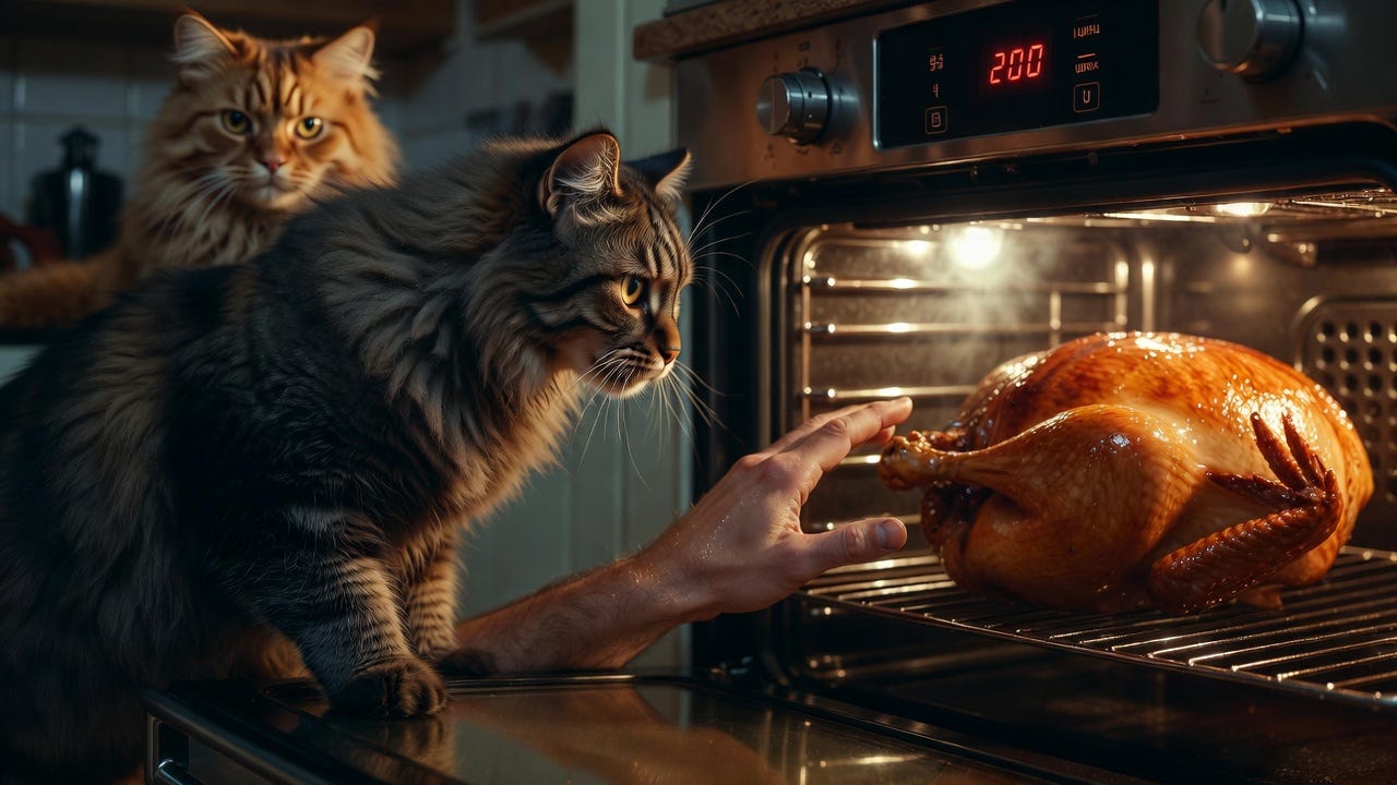 Or you can stay for the German oven, the two Maine Coons, and the bone broth. I promise the metaphor earns itself. And there’s a Lizard🦎.