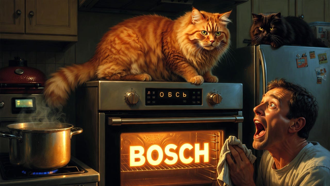 ME: “It doesn’t NEED WiFi. It heard us directly. It went: ‘Neue oven? Nein nein nein. I still have firmware.’”